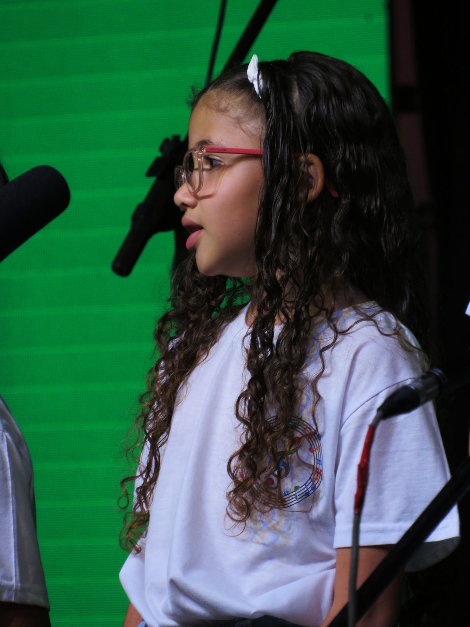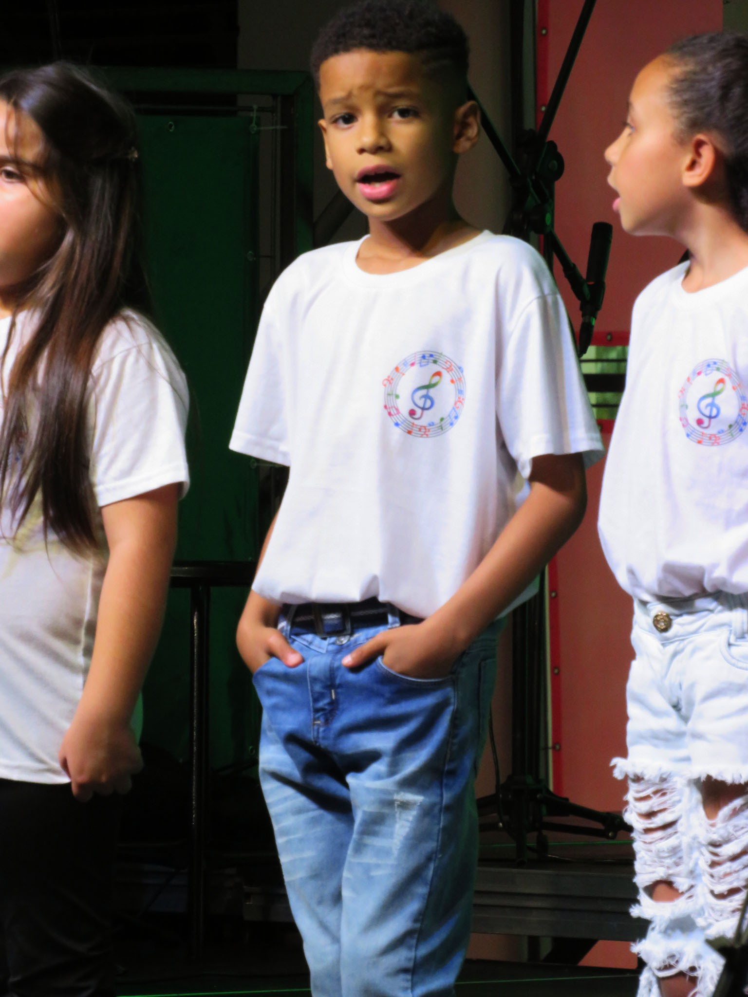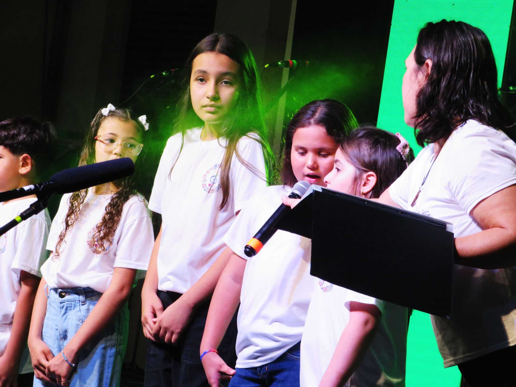 A apresentação foi conduzida pelos instrutores Rogério e Rosângela, responsáveis pelas oficinas musicais, e contou com um repertório emocionante. No palco, as crianças interpretaram as canções “Aquarela”, “De gotinha em gotinha”, “Bênçãos que não têm fim” e “Era uma vez”.