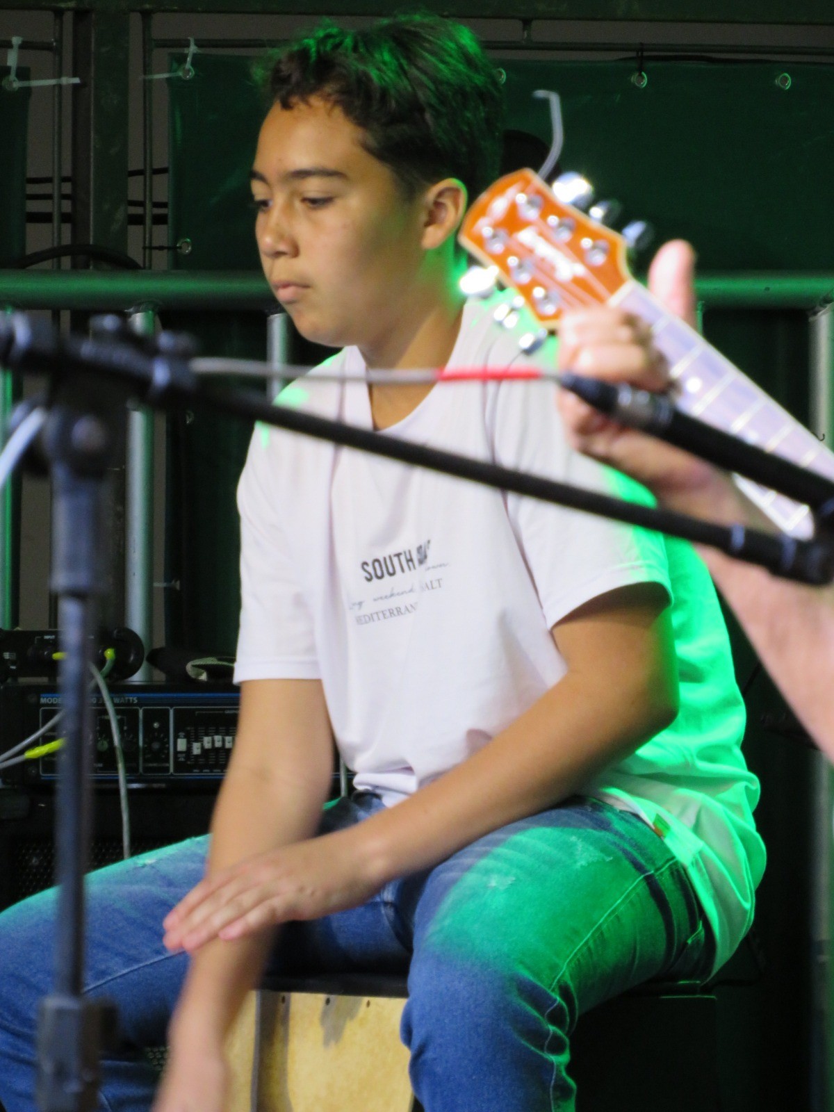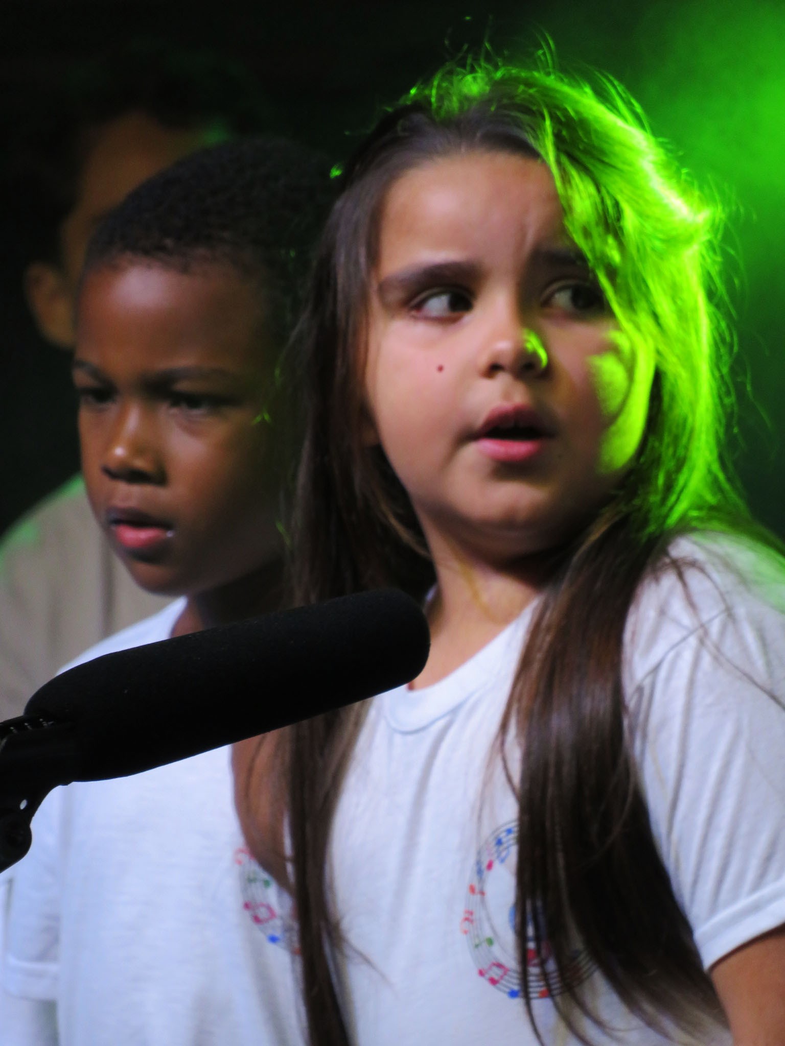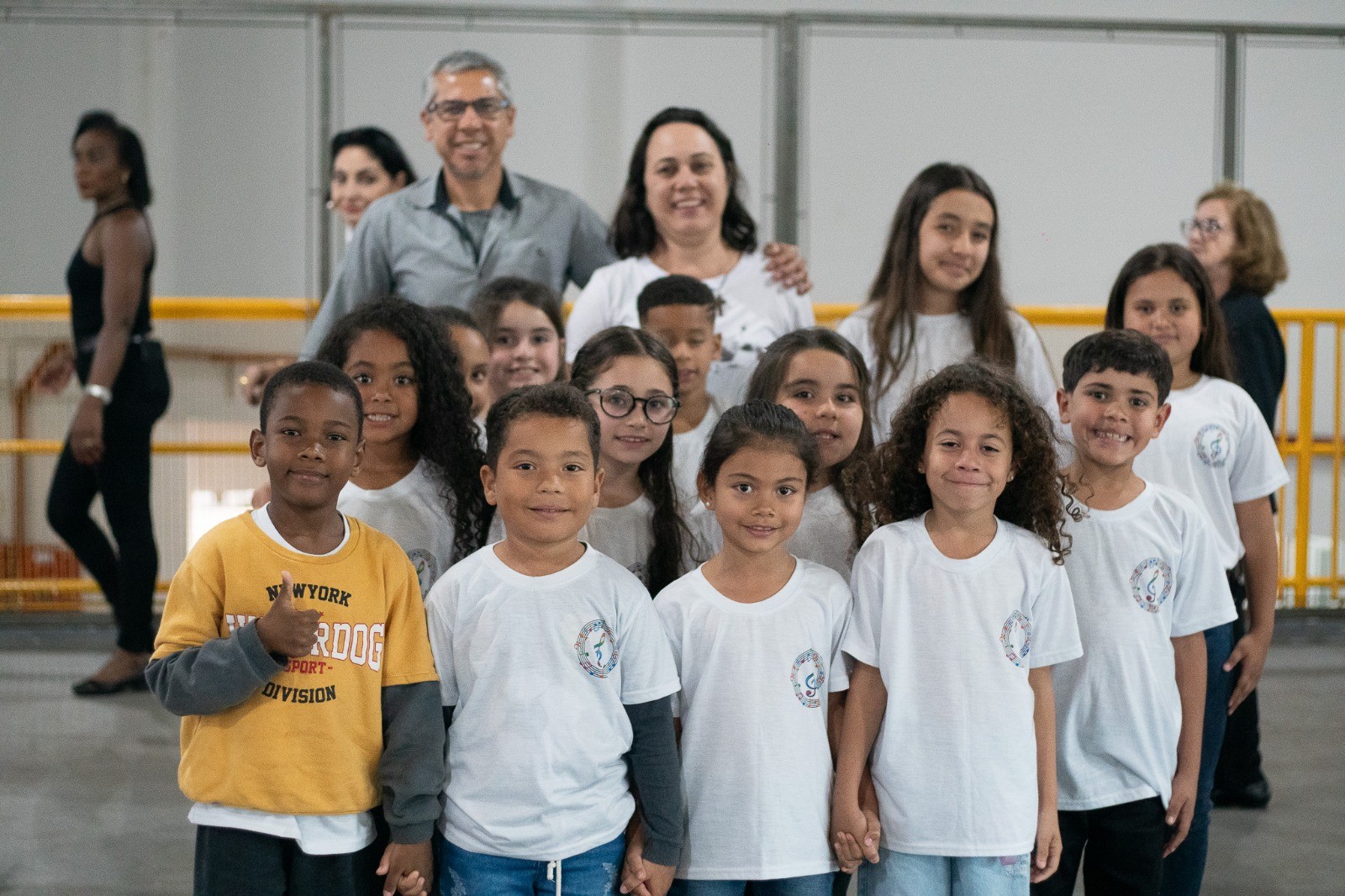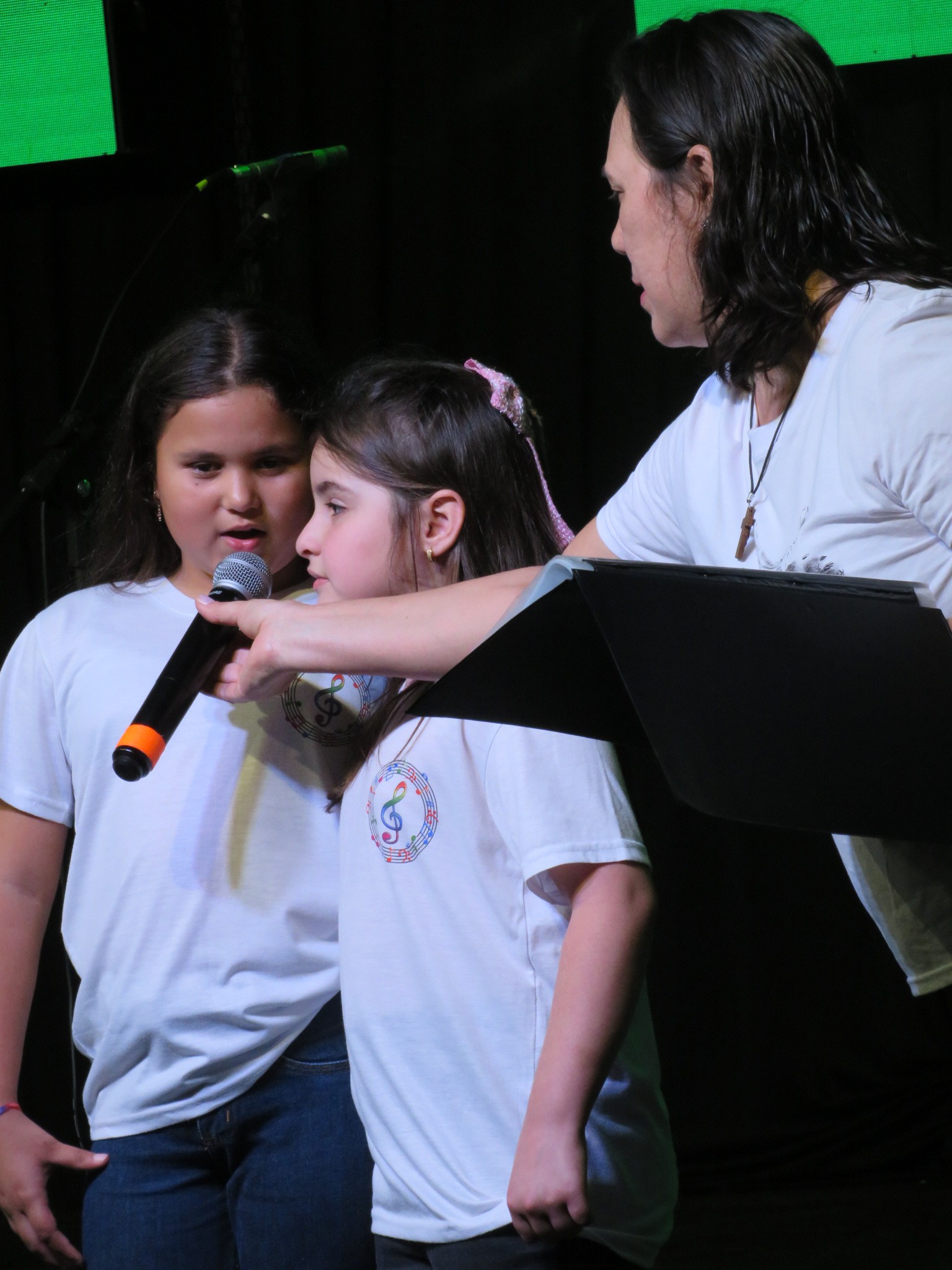 A apresentação foi conduzida pelos instrutores Rogério e Rosângela, responsáveis pelas oficinas musicais, e contou com um repertório emocionante. No palco, as crianças interpretaram as canções “Aquarela”, “De gotinha em gotinha”, “Bênçãos que não têm fim” e “Era uma vez”.